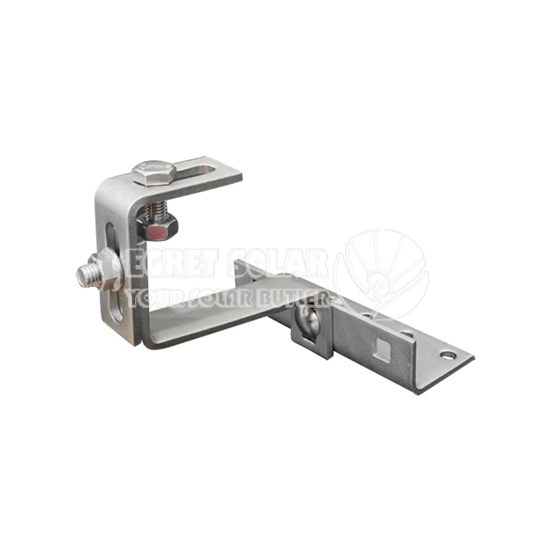 Pancing Atap Surya Stainless Steel sing bisa diatur ing atap genteng. Biasane digunakake karo Solar Rail 40 * 40mmm kanggo nyambungake, Solar Rapid / Fast Mid Clamp lan Solar Rapid / Fast End Clamp ngrampungake instalasi cepet nalika nginstal.