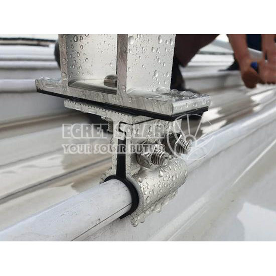 Clamps iki biasane dirancang kanggo nggunakake warata utawa kurang-slope ngadeg lapisan logam gendheng. Kanggo atap sing mlengkung utawa miring, jinis sistem pemasangan sing beda bisa uga dibutuhake.