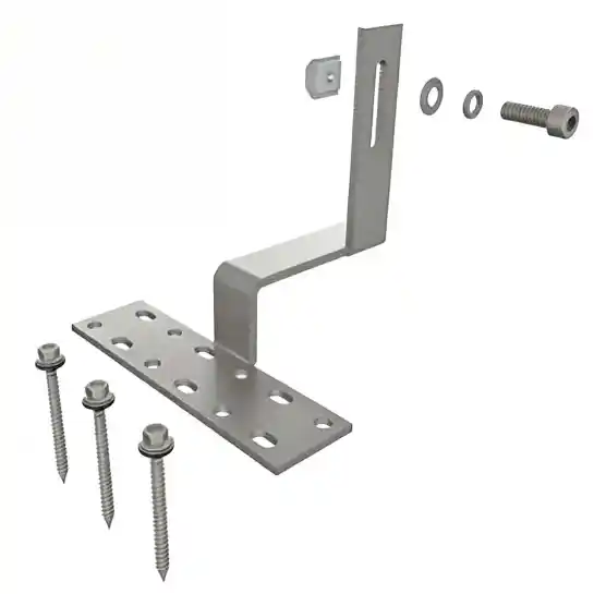 IkiSolar Tile Roof Hook kanggo Solar Dipasangdirancang kanthi indikatif lan bisa dipasang kanthi aman kanthi horisontal lan vertikal. Sekrup lan kacang nggawe struktur sing kuat lan dipercaya. Proses instalasi ora mbutuhake alat rumit utawa katrampilan profesional. Wong biasa bisa nindakake kanthi gampang. Ngartekno ngirit wektu instalasi lan biaya tenaga kerja, lan nambah efisiensi kerja sakabèhé.