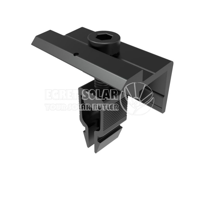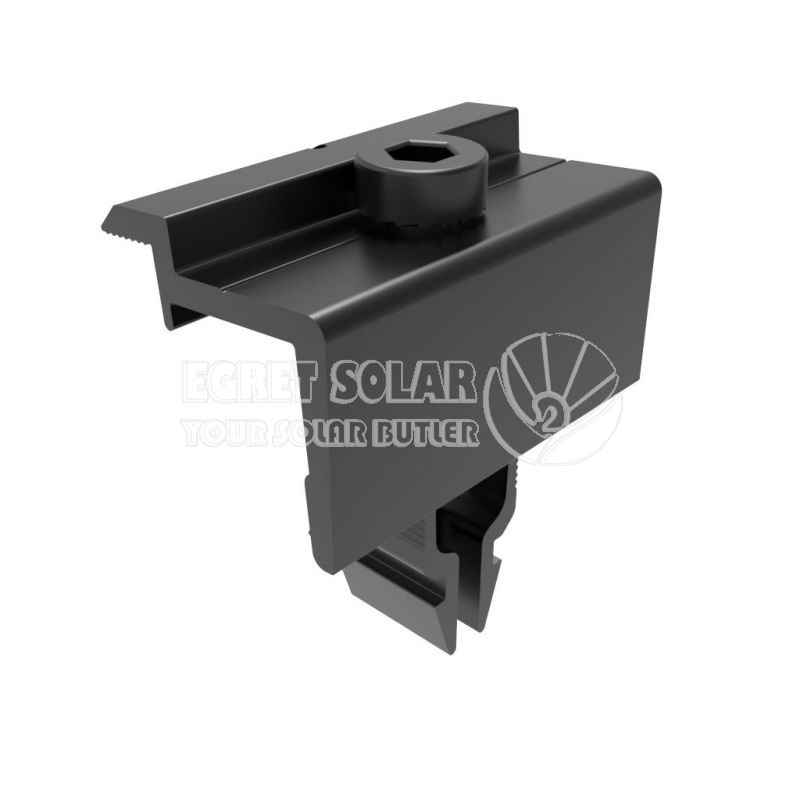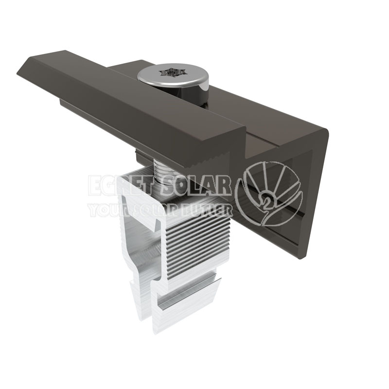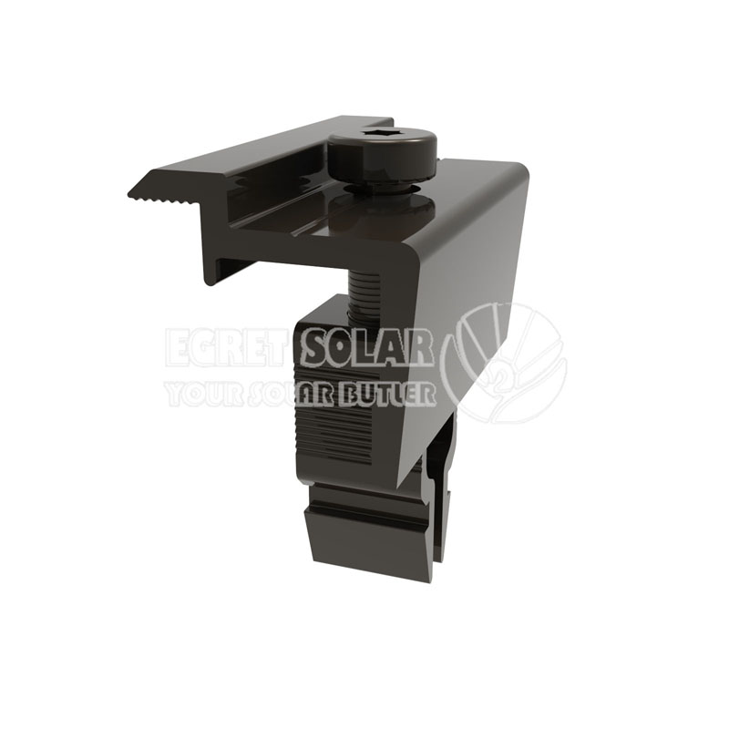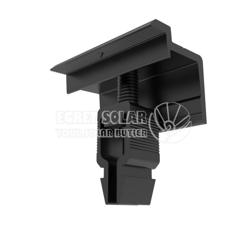 Panel surya Egret penjepit mburi cepet ireng nyedhiyakake akeh kaluwihan, kayata gudang sing luwih apik amarga jumlah varian desain sing minimal lan pin grounding sing terintegrasi ing saben clamp modul. , dirancang kanggo pigura modul saka 30 - 40 mm dhuwur. Clamp tengah kanthi cepet lan clamp pungkasan kanthi cepet bisa diatasi kanthi cepet ing antarane ril lan panel surya kanthi mencet.